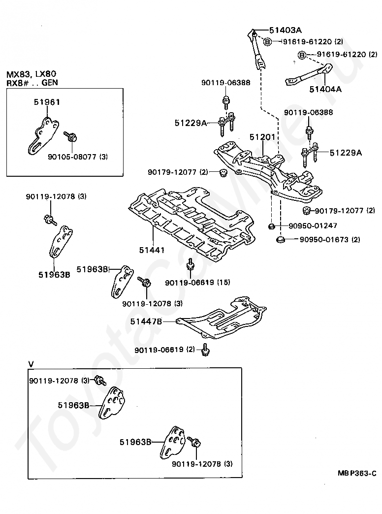 SUSPENSION CROSSMEMBER & UNDER COVER TOYOTA CRESSIDA
