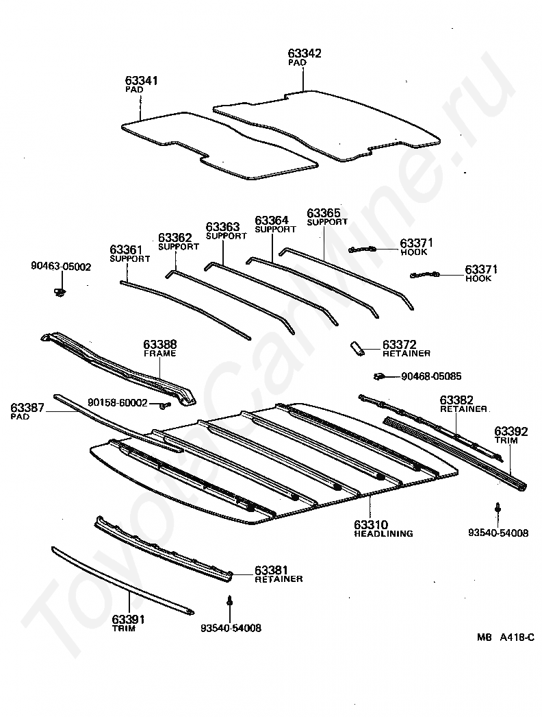 ROOF HEADLINING & SILENCER PAD TOYOTA CROWN