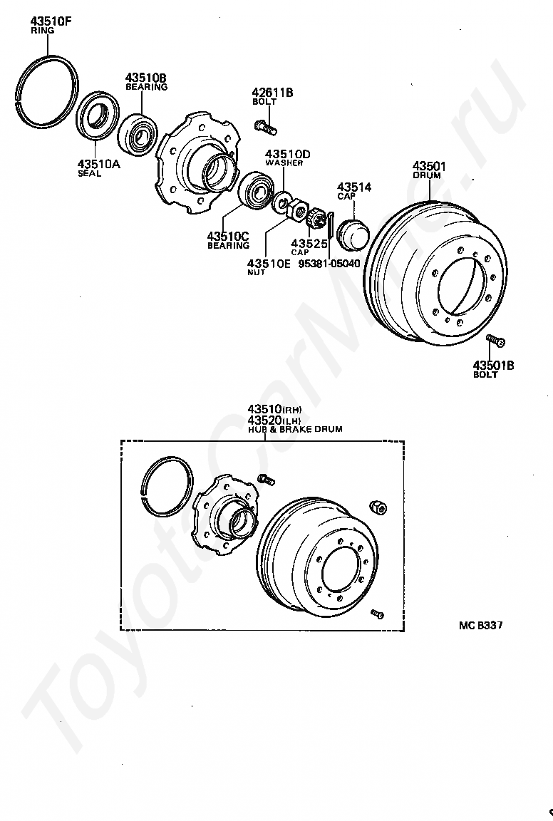 HUB AND BRAKE DRUM ASSY, FRONT AXLE, RH