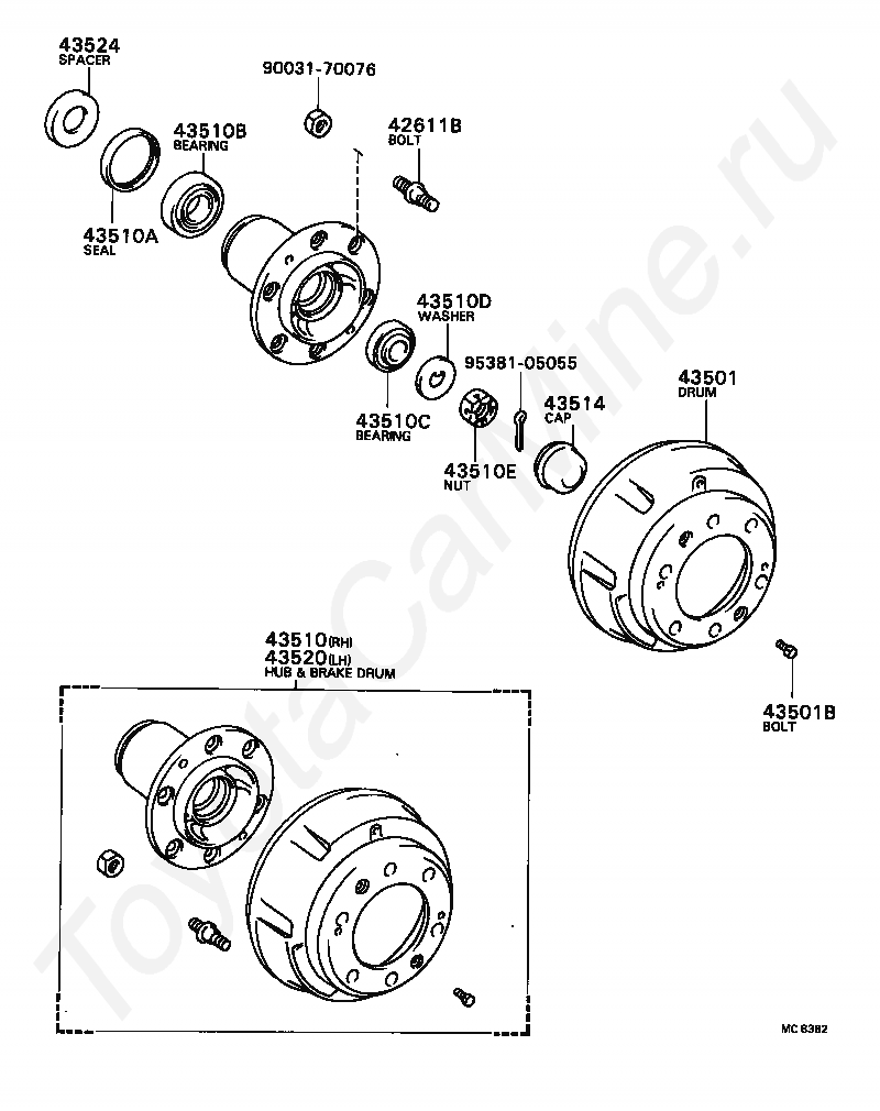 HUB AND BRAKE DRUM ASSY, FRONT AXLE, RH