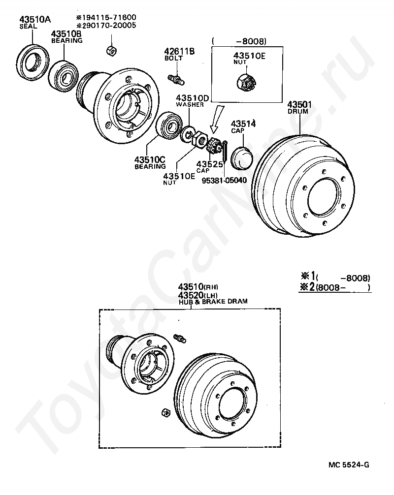 HUB AND BRAKE DRUM ASSY, FRONT AXLE, RH