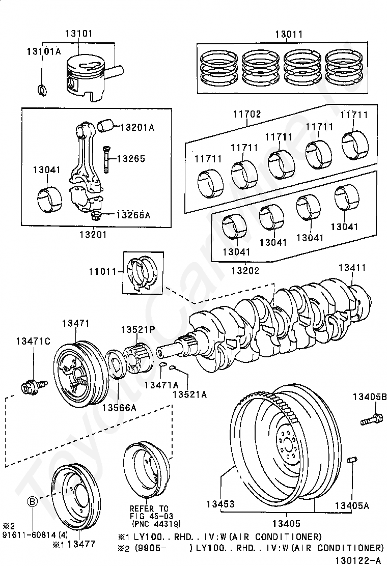 Коленвал и поршни TOYOTA DYNA 100
