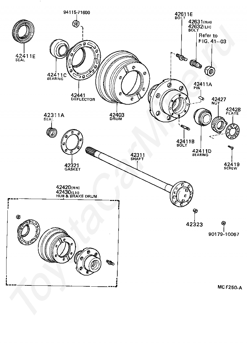 HUB (OR SHAFT) & BRAKE DRUM REAR AXLE, LH