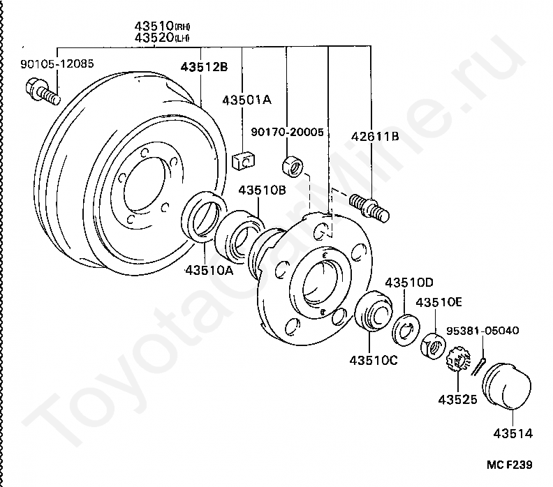 HUB AND BRAKE DRUM ASSY, FRONT AXLE, LH