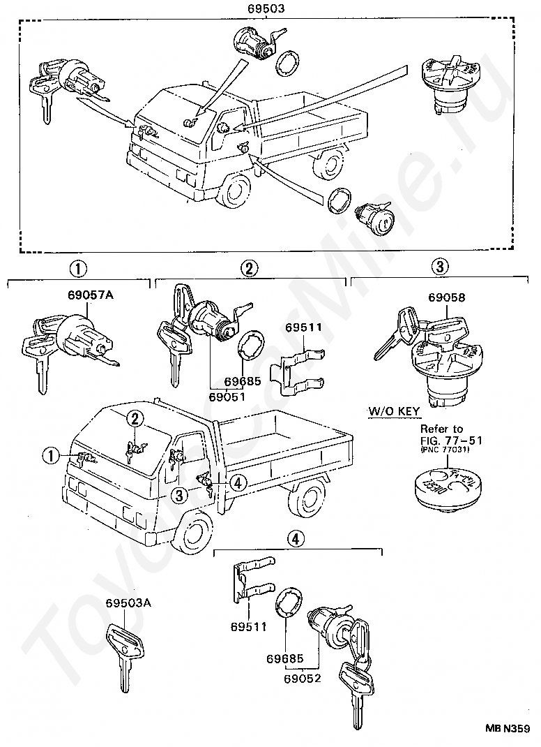Комплект личинок замков TOYOTA DYNA 200