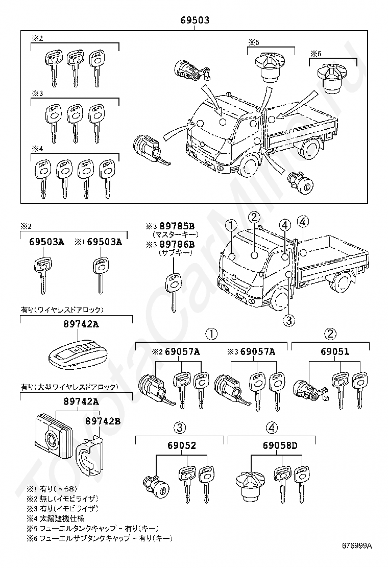 Комплект личинок замков TOYOTA DYNA/TOYOACE