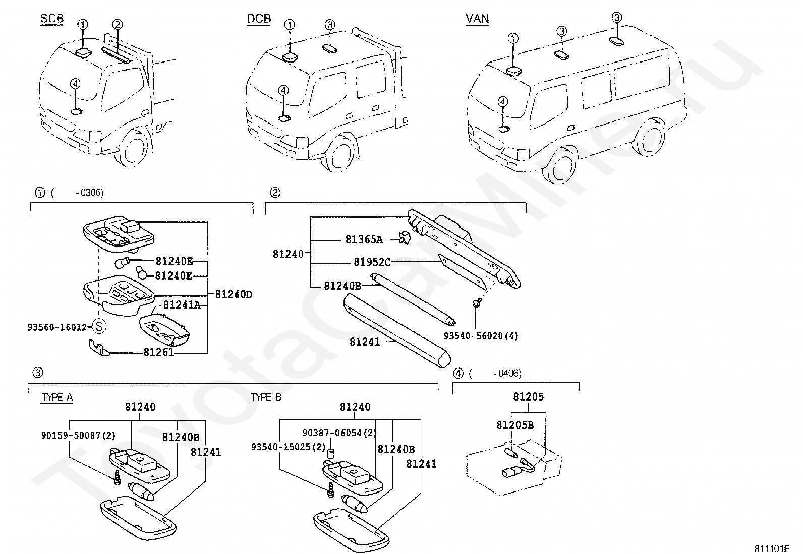 Салонные лампы TOYOTA DYNA/TOYOACE
