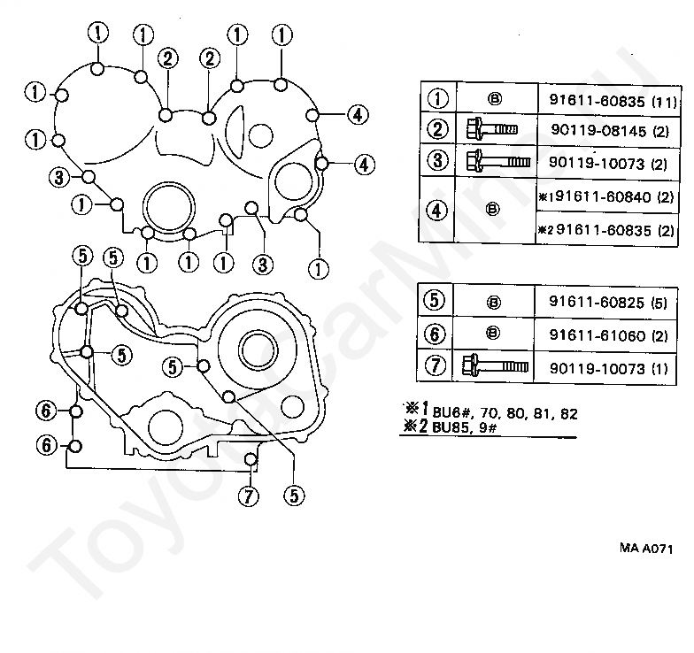 TIMING GEAR COVER & REAR END PLATE TOYOTA DYNA/TOYOACE