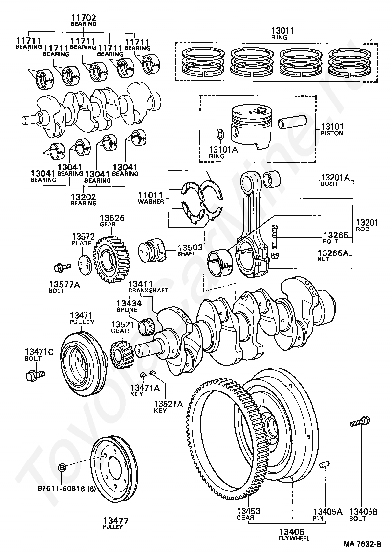 Коленвал и поршни TOYOTA DYNA/TOYOACE