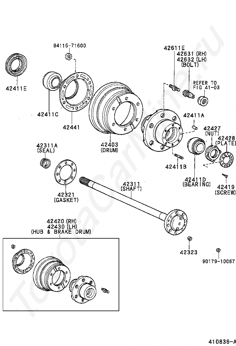 HUB (OR SHAFT) & BRAKE DRUM REAR AXLE, LH