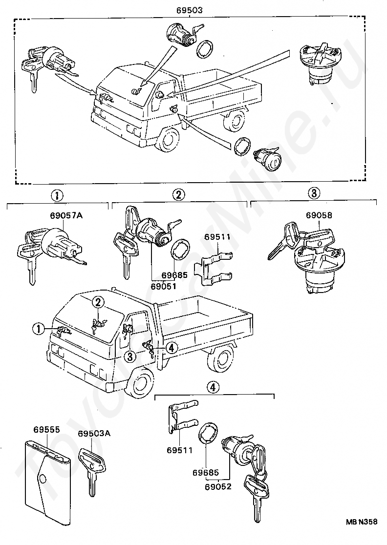 Комплект личинок замков TOYOTA DYNA/TOYOACE