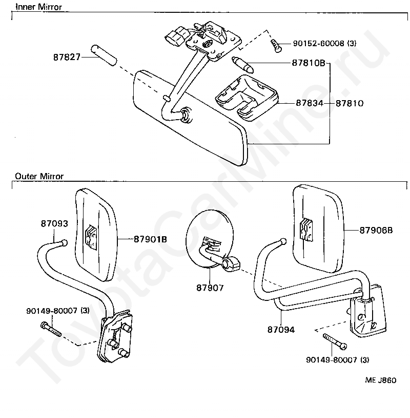 MIRROR SUB-ASSY, OUTER UNDER VIEW