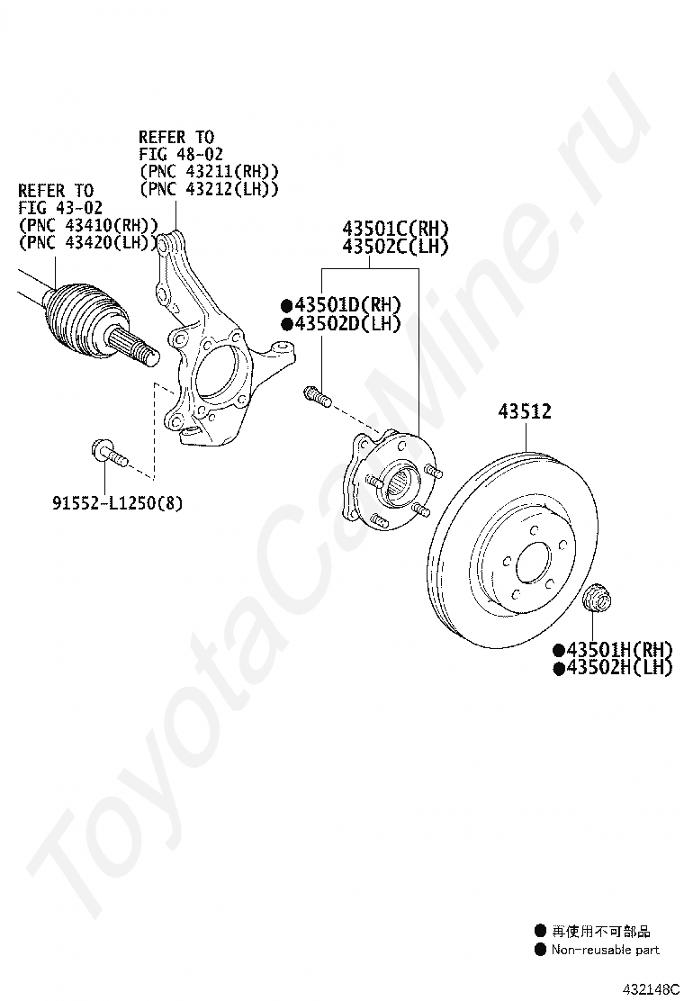 Передняя ступица и тормозной диск TOYOTA ESTIMA HYBRID