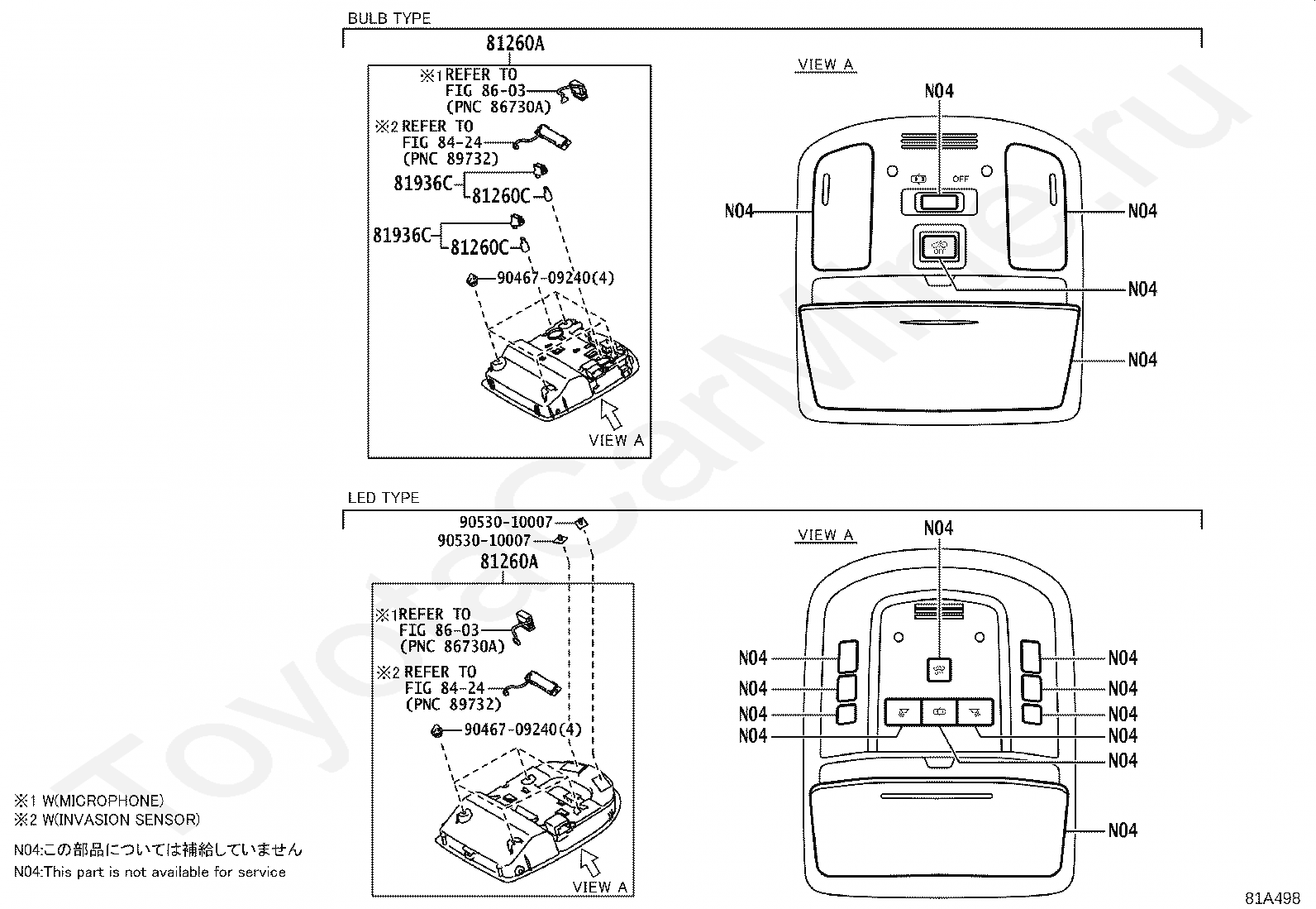 Салонные лампы TOYOTA FORTUNER (SUV)