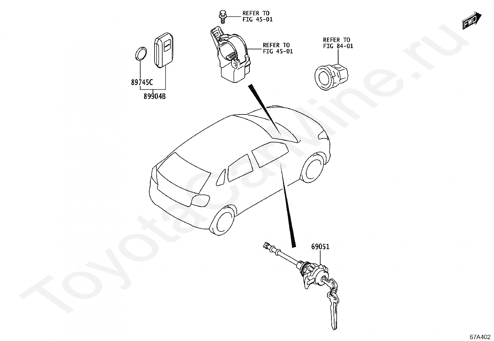 CYLINDER & KEY SET, DOOR LOCK, RH