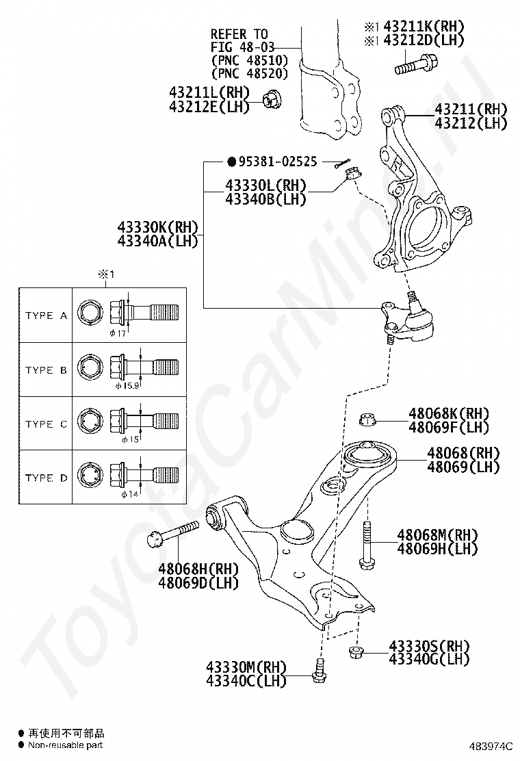 NUT(FOR FRONT SUSPENSION LOWER ARM NO.2 RH)