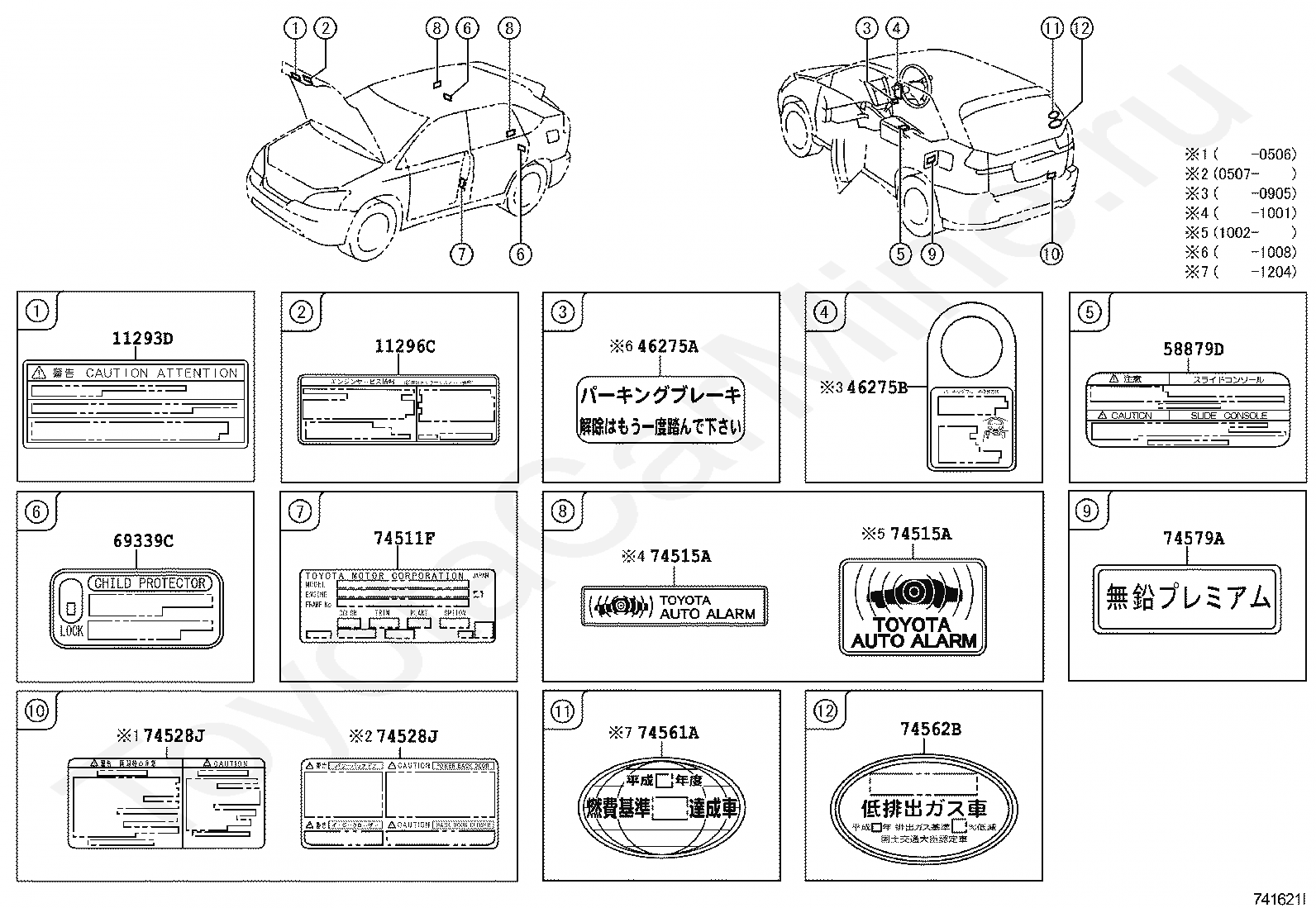 Информационные таблички TOYOTA HARRIER HV