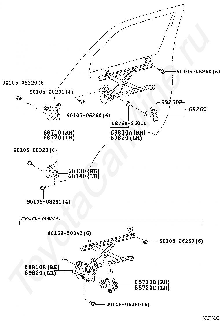 Стеклоподъемник и петли передней двери TOYOTA HIACE