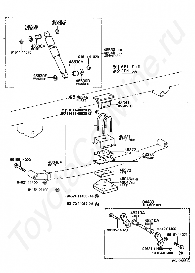 Задние амортизаторы TOYOTA HIACE VAN,COMMUTER