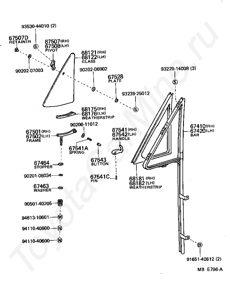 Вентиляционное окно передней двери TOYOTA HIACE VAN,COMMUTER