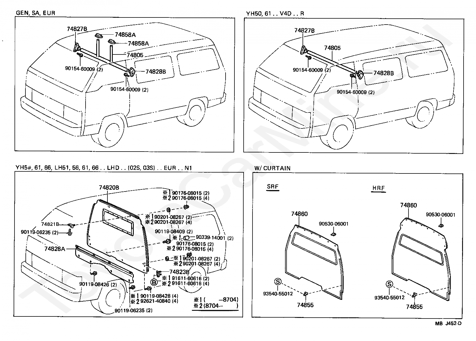 левый руль STANDARD ROOF 4-дверный вэн SIDE GLASS VAN R EUR N1