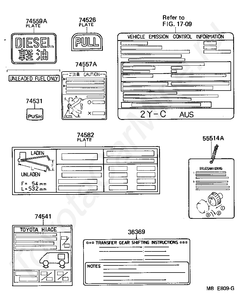Информационные таблички TOYOTA HIACE VAN,COMMUTER