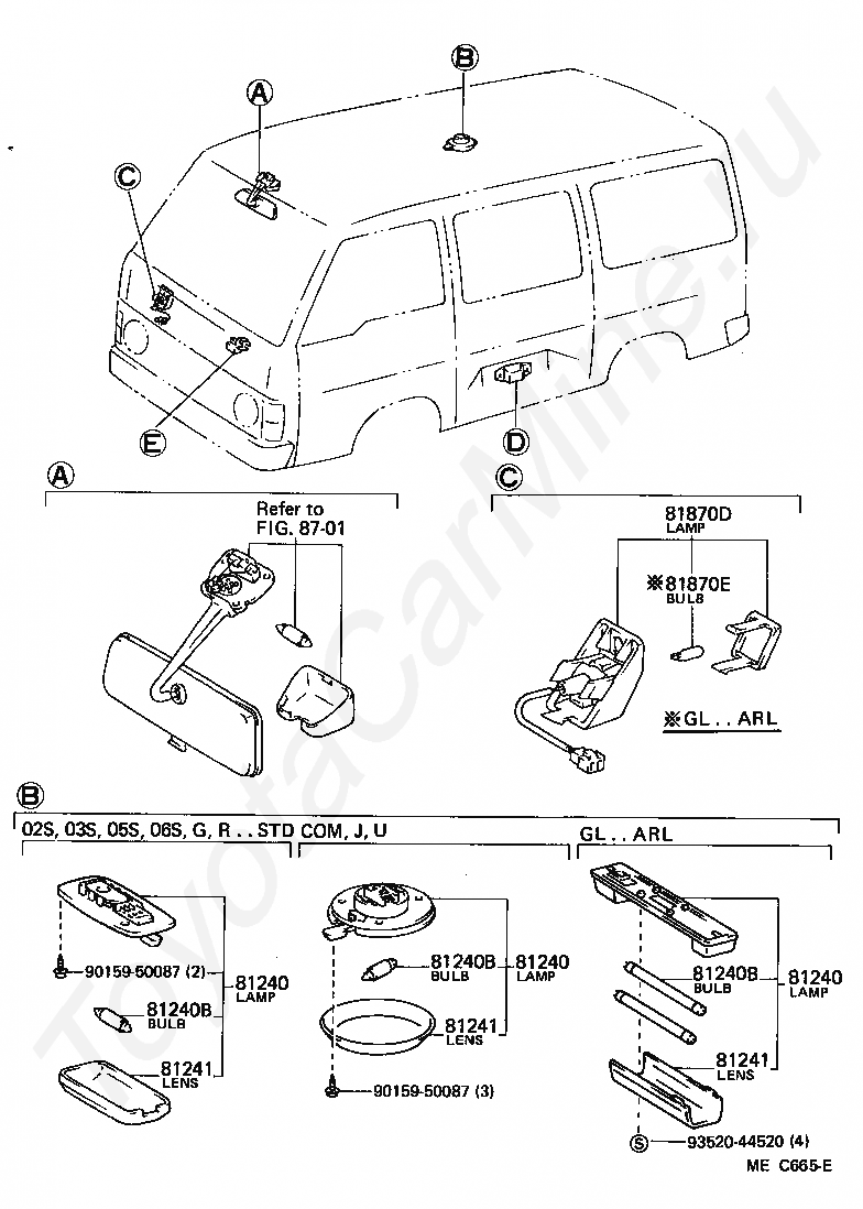 Салонные лампы TOYOTA HIACE VAN,COMMUTER