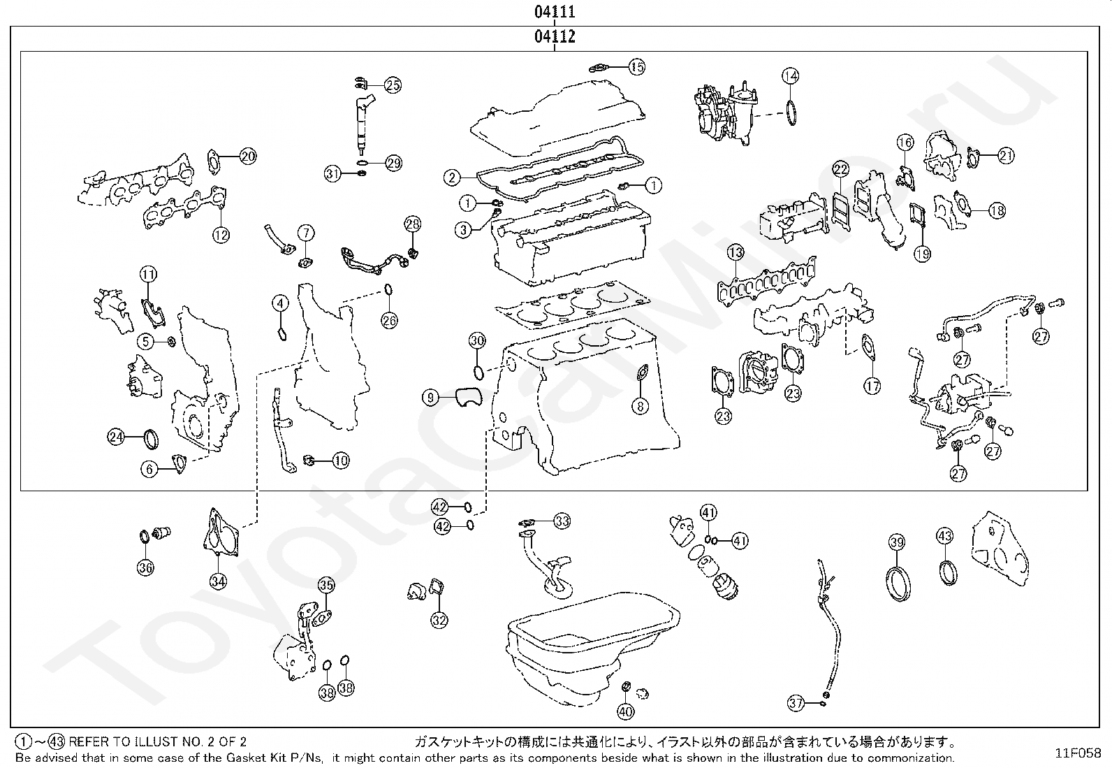 Комплект прокладок ДВС TOYOTA HILUX