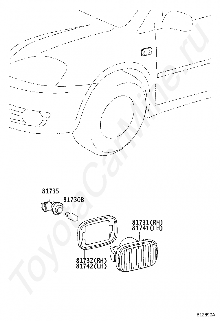 GASKET, SIDE TURN SIGNAL LAMP LENS, RH