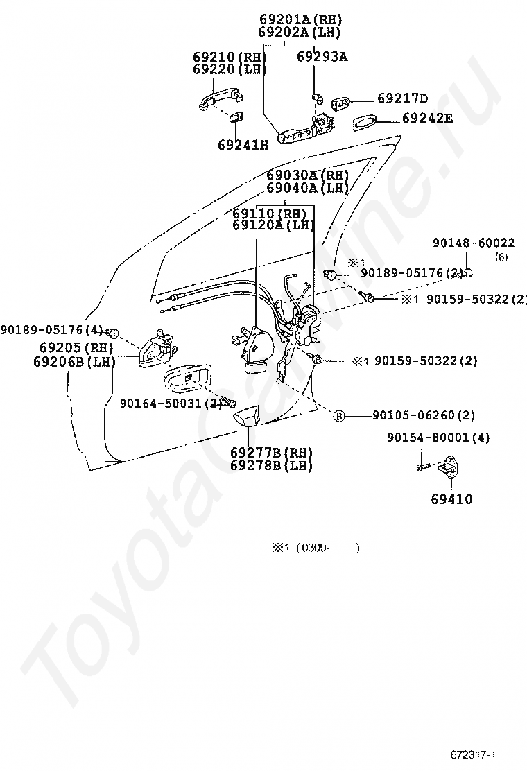 FRAME SUB-ASSY, FRONT DOOR OUTSIDE HANDLE, RH