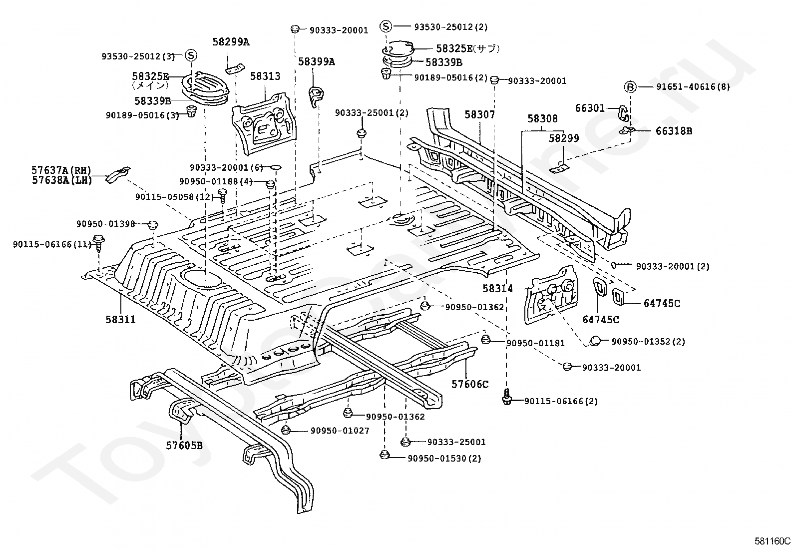 Задняя панель пола TOYOTA LAND CRUISER VAN