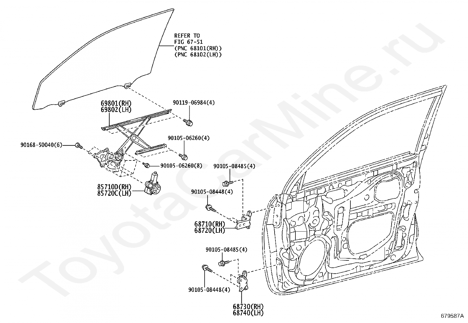 Стеклоподъемник и петли передней двери TOYOTA LAND CRUISER