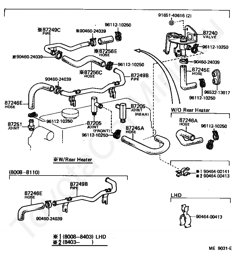HOSE, REAR HEATER WATER OUTLET, E (TO ENGINE)