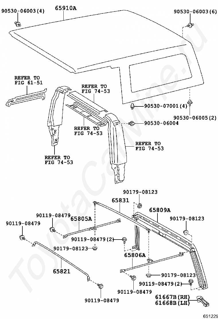 REAR BODY TOP CURTAIN & ROOF PANEL TOYOTA LAND CRUISER