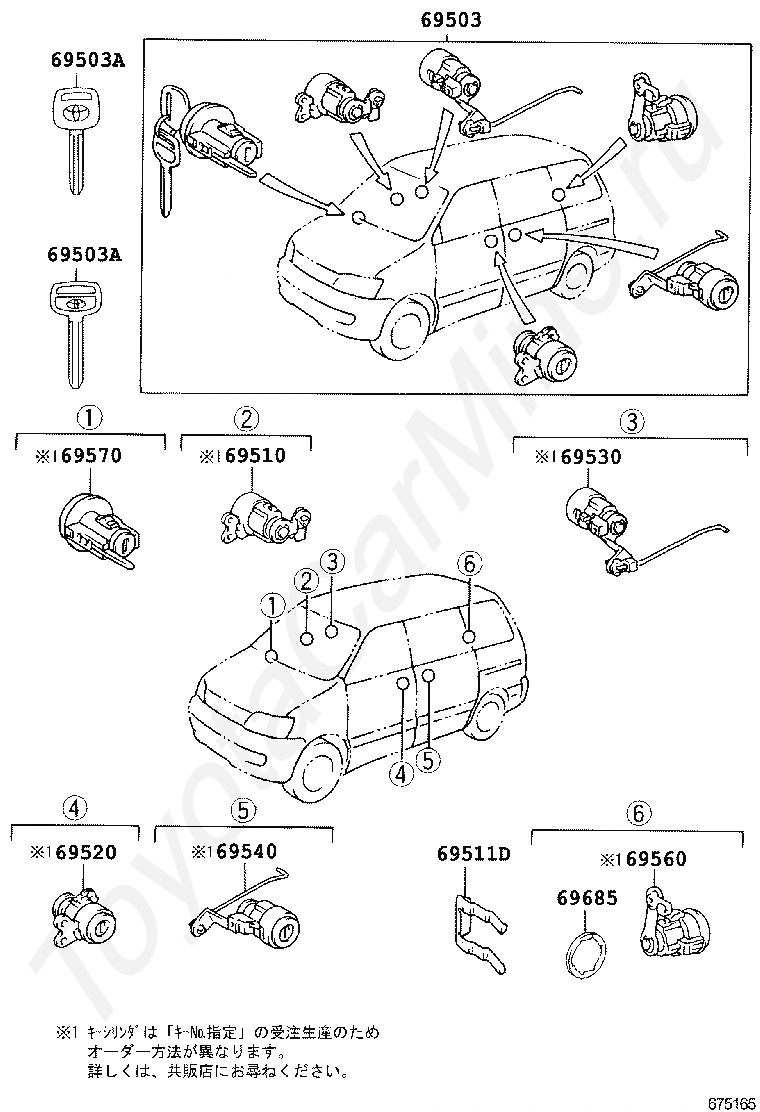 Комплект личинок замков TOYOTA LITE/TOWNACE NOAH,V