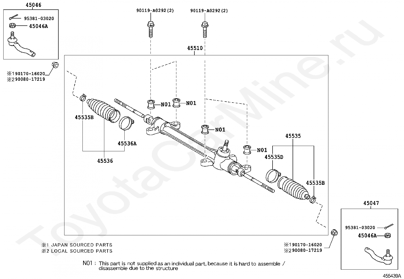 Рулевая рейка и наконечники TOYOTA MATRIX
