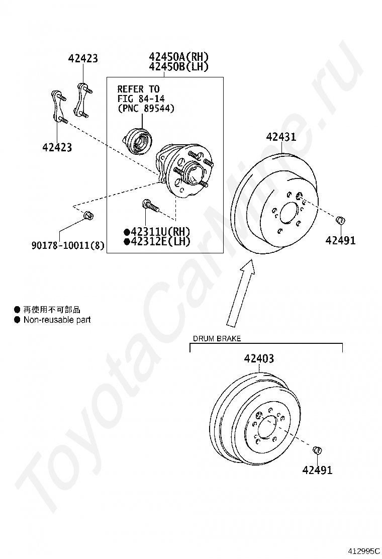 Задняя ступица и тормозной диск TOYOTA NOAH