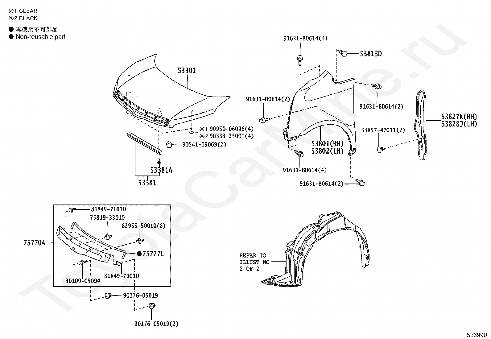 Капот и передние крылья TOYOTA NOAH