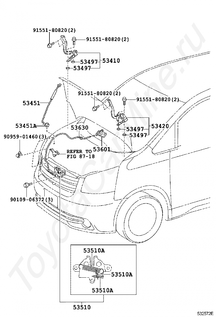 Замок и петли капота TOYOTA NOAH