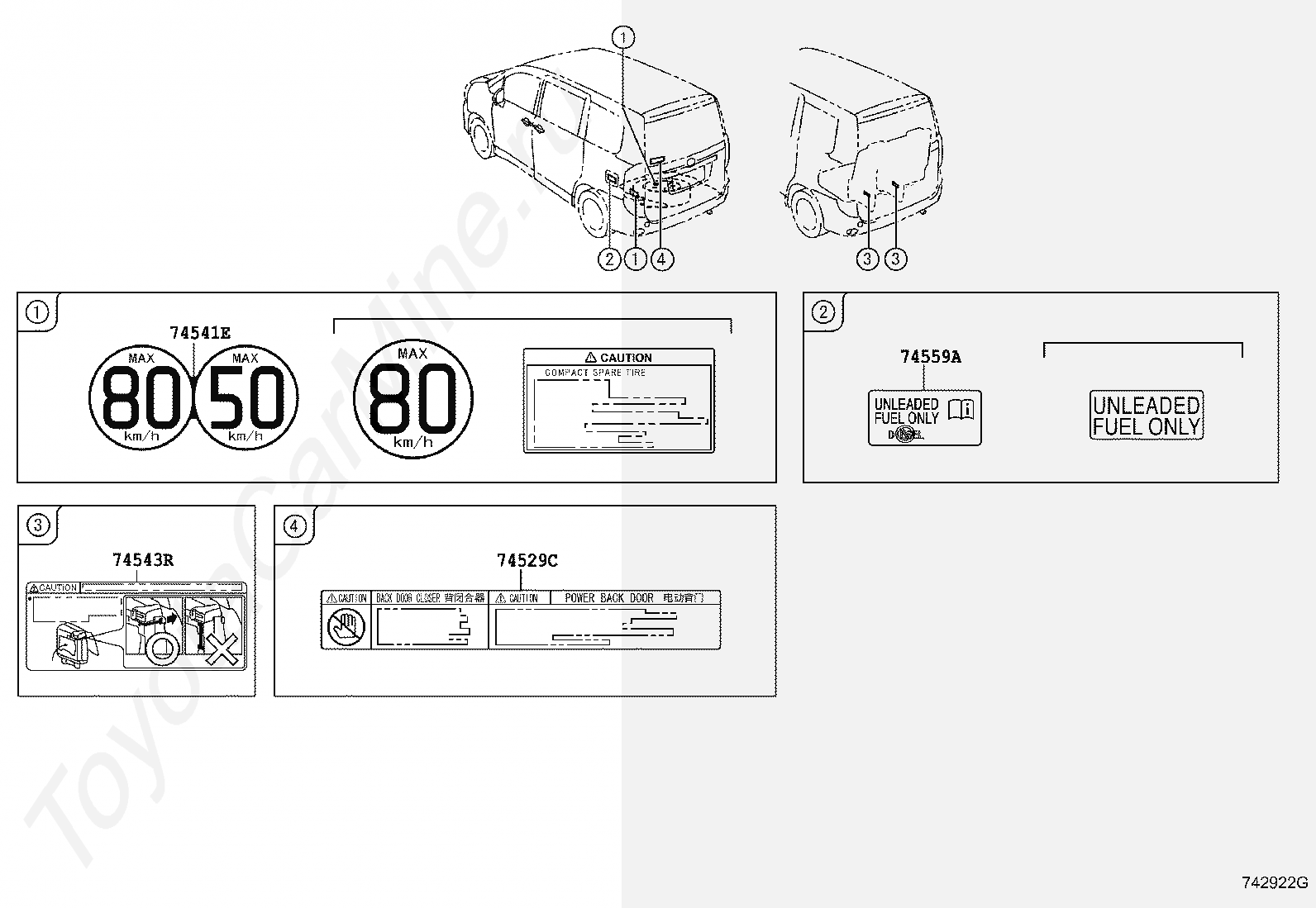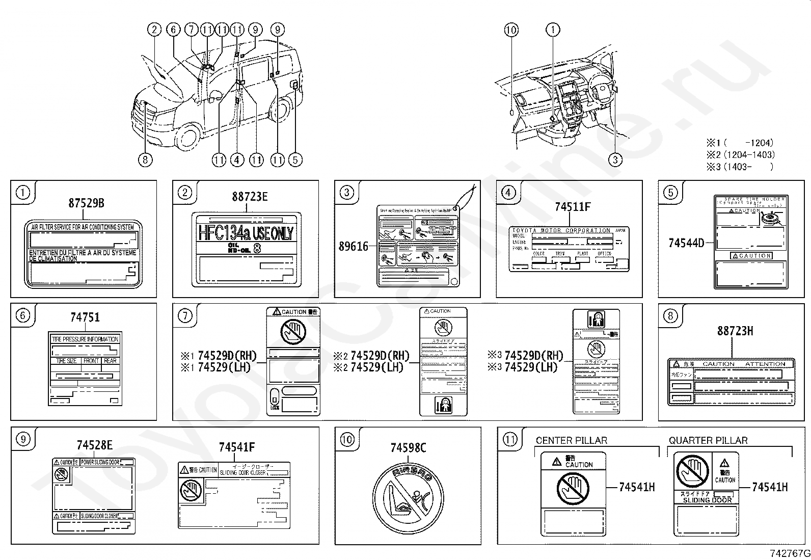 Информационные таблички TOYOTA NOAH