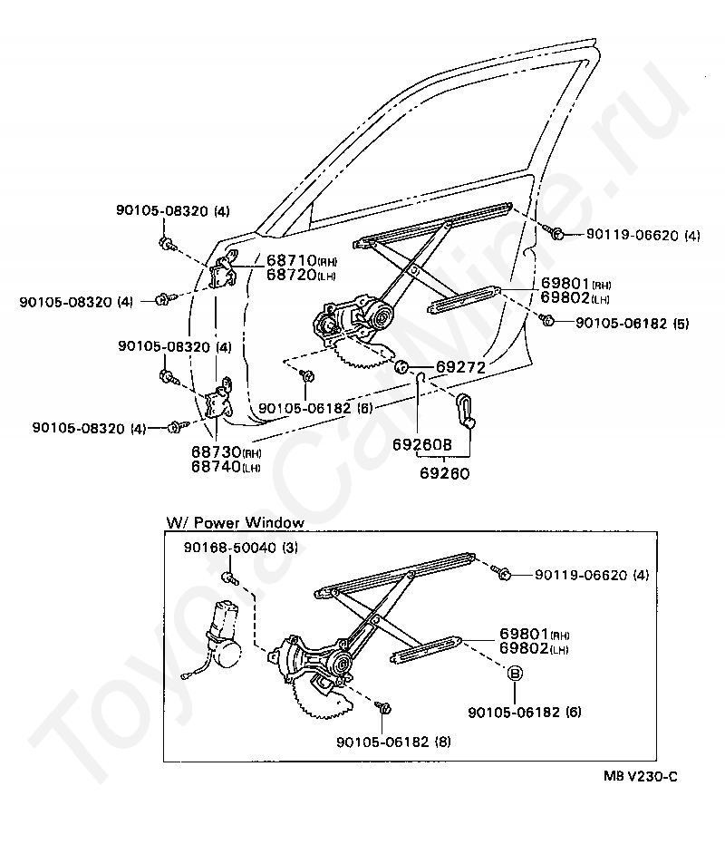Стеклоподъемник и петли передней двери TOYOTA PASEO