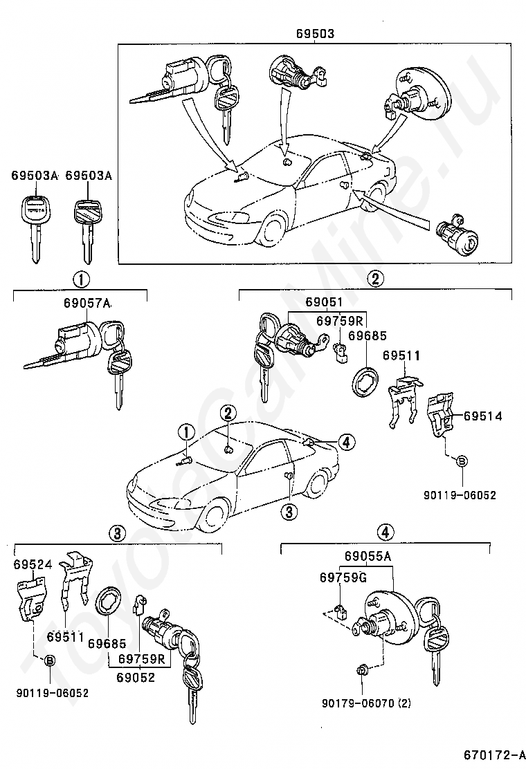 CYLINDER & KEY SET, DOOR LOCK, RH