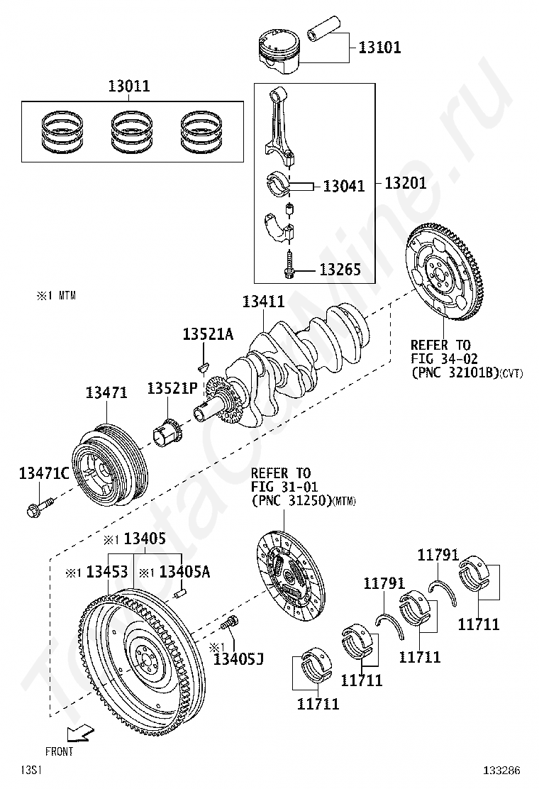Коленвал и поршни TOYOTA PIXIS VAN