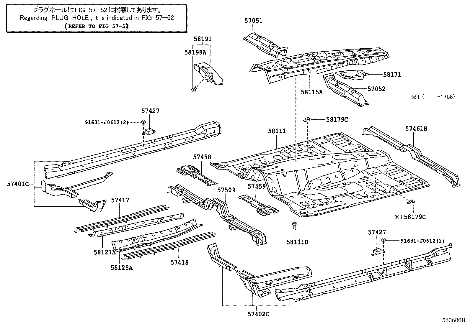 MEMBER SUB-ASSY, CENTER FLOOR CROSS, NO.1