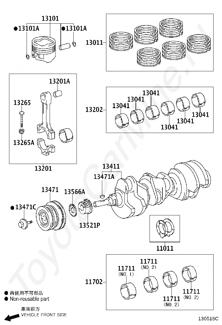Коленвал и поршни TOYOTA LAND CRUISER PRADO