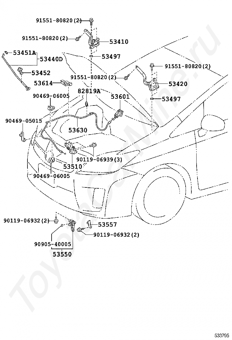 Замок и петли капота TOYOTA PRIUS(PLUG-IN HBD)