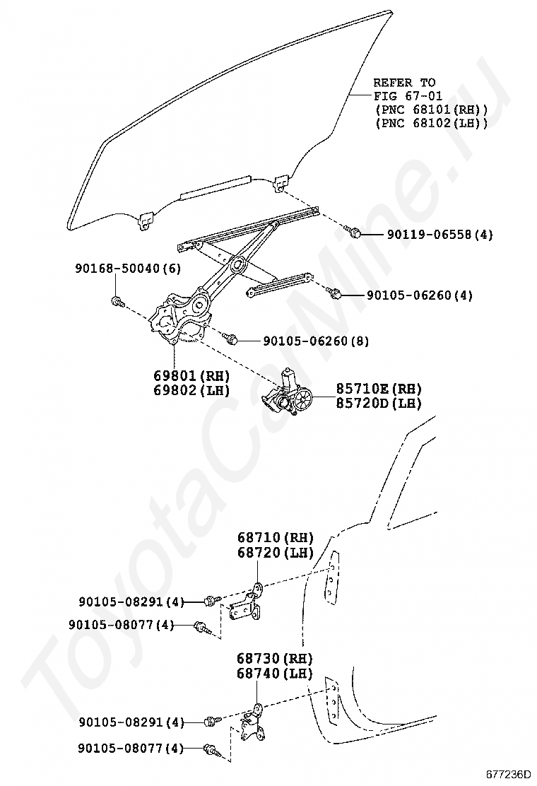 Стеклоподъемник и петли передней двери TOYOTA PRIUS(PLUG-IN HBD)