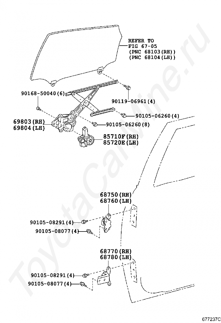 Стеклоподъемник и петли задней двери TOYOTA PRIUS(PLUG-IN HBD)
