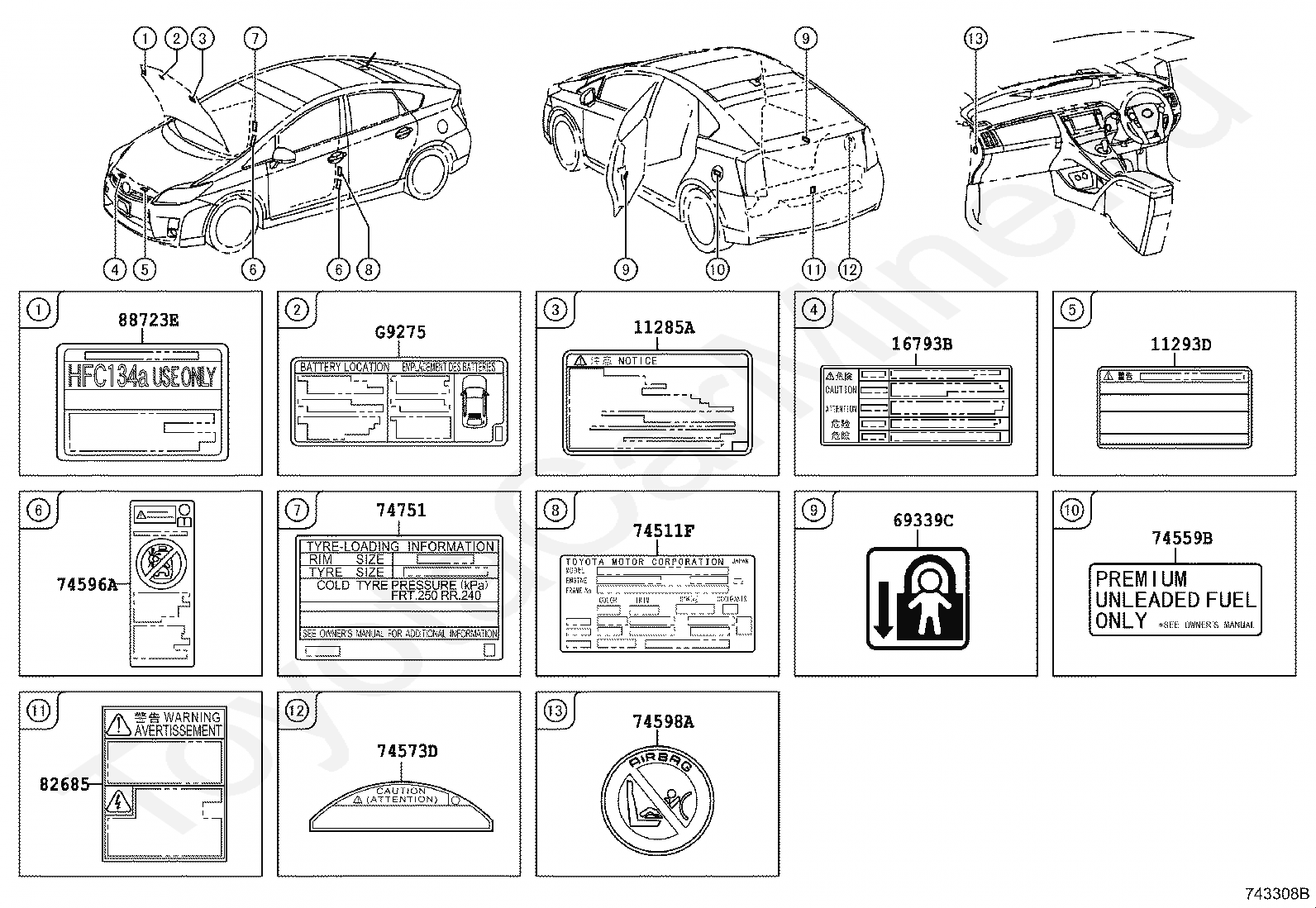 Информационные таблички TOYOTA PRIUS(PLUG-IN HBD)