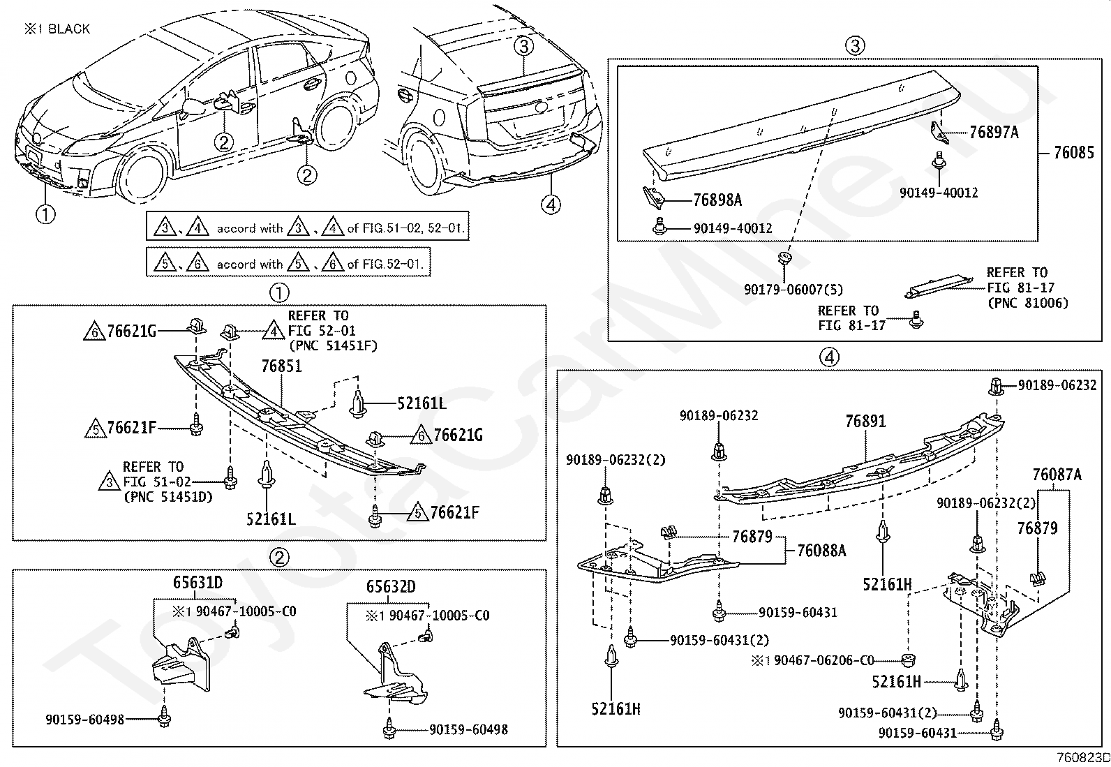 Брызговики и спойлер TOYOTA PRIUS(PLUG-IN HBD)